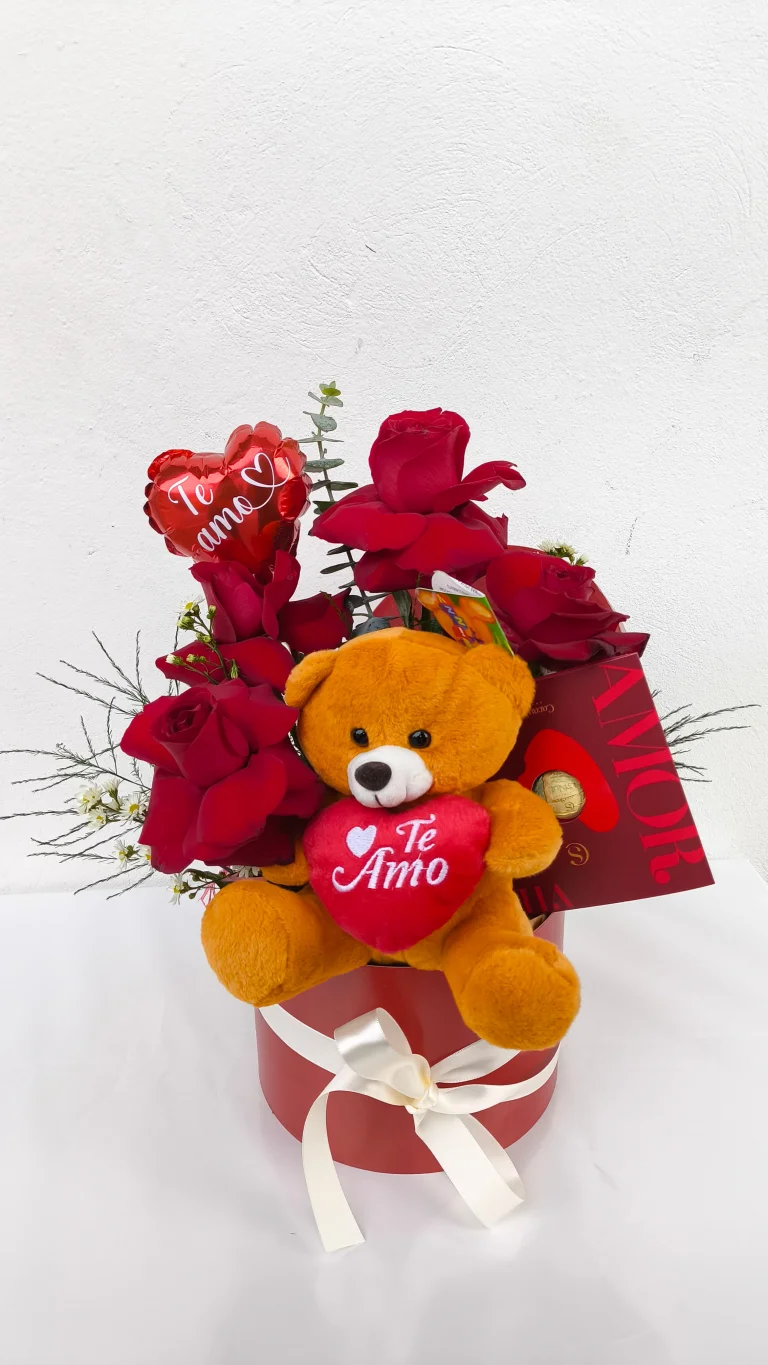 Kit Contém: 1 Box com 4 Rosas 1 Urso Romântico 1 Balão Pq 1 Cartão com...