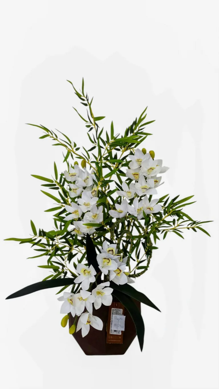 vaso artificial, contendo: vaso ceramica branco hastes de orquidea...